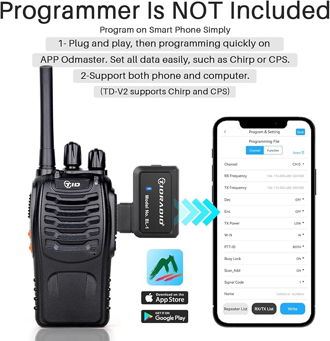 - 💎【Versatile Features】TD-V2 long range Walky Talky is equipped with a built-in LED flashlight, VOX system, and 155 CTCSS&DCS private codes for encrypted communication. Our walkie-talkies also feature scanning capabilities to help you locate conversations in progress. The other models can be compatible with TD-V2 walkie talkies after programming. (Non-default features need to be customised using Odmaster, Chirp or CSP)