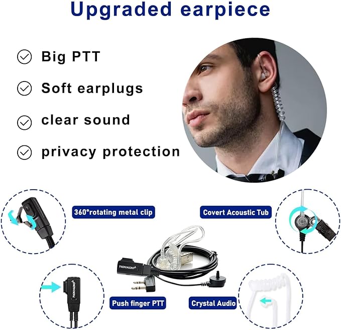 - 💎【Upgraded Headset】We've included upgraded Air Acoustic Tube headsets to ensure that your calls are crystal clear in noisy environments. The acoustic tube earpiece are more comfortable to wear and deliver clearer sound quality, while protecting your privacy