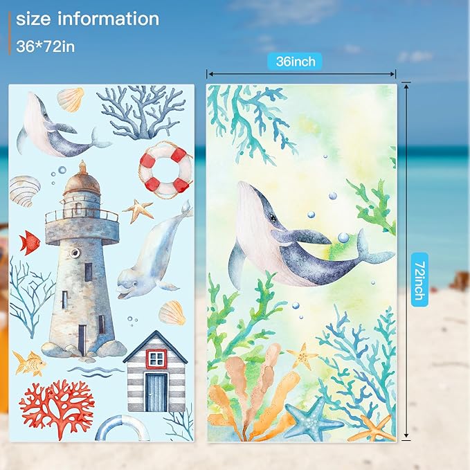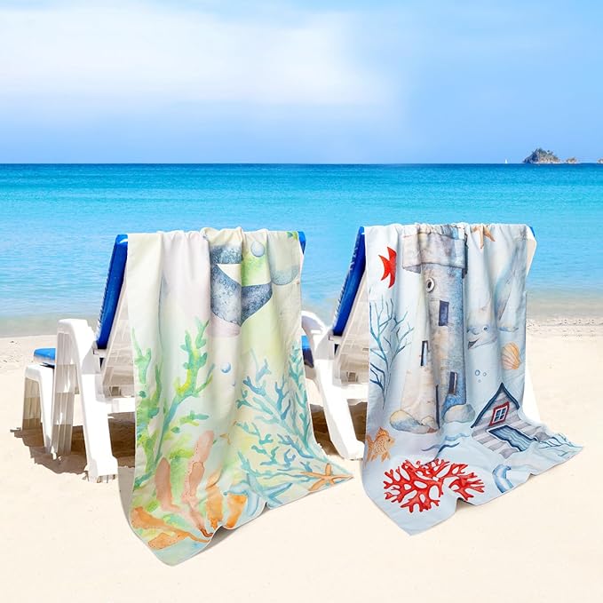Microfiber Sand Free Beach Towel 72"x36",Extra Large Lightweight Super Absorbent Thin Fast Drying Towels for Swimming Bathing Outdoor Travel Hiking Adults(2 Pack Lighthouse)