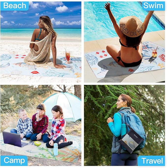 - Multi-Purpose Towel:Soft as baby's skin, this beach towel can be used as a beach blanket, swimming pool towel, bath towel, and even a picnic blanket, making it perfect for beaches, swimming pools, spas, saunas, hotels, yoga, exercise, travel, bathrooms, camping, hiking, and picnics, both indoors and outdoors; The fabric of this beach towel is sun resistant and will not fade easily after multiple washes