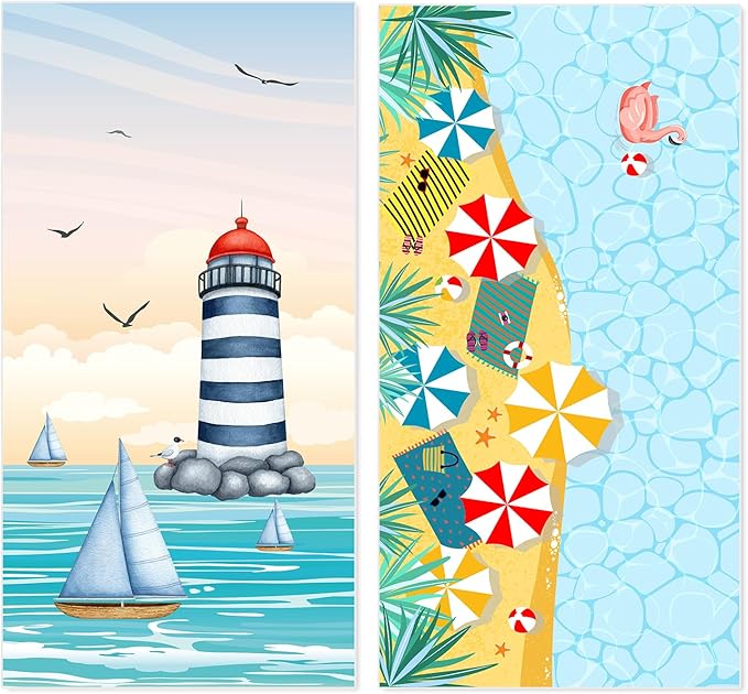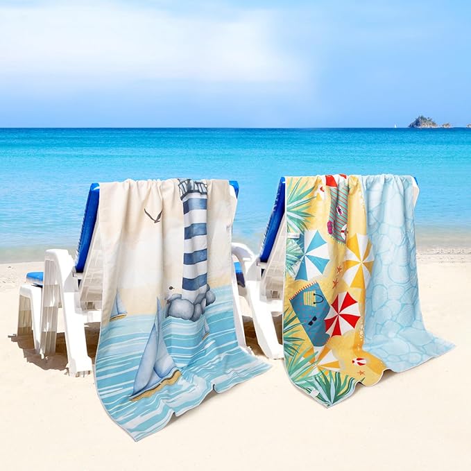 Microfiber Sand Free Beach Towel 72"x36",Extra Large Lightweight Super Absorbent Thin Fast Drying Towels for Swimming Bathing Pool Outdoor Hiking Adults(2 Pack Sunshine Coast)