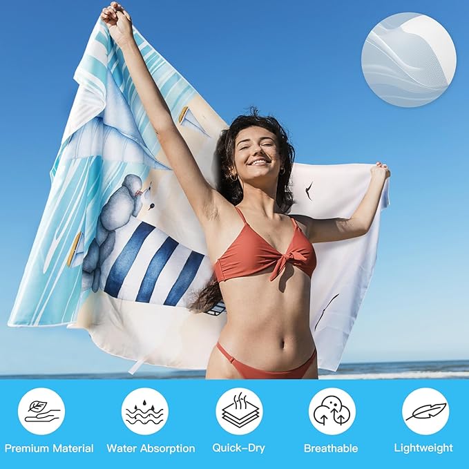 - Super Absorbent and Quick Dry:Our beach towel is made of high quality microfiber and can quickly absorb 3-4 times its weight in water, 3 times faster than ordinary terry cloth or regular towels; They can quickly dry your body to avoid dampness and cold on the beach; You can rest on it or wrap it around your body