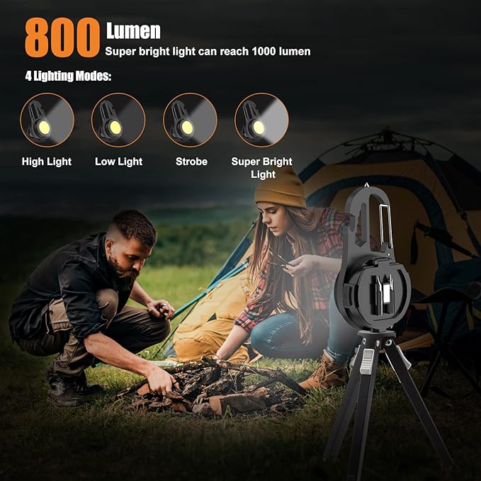 - Super Bright COB LEDs: Brightness up to 800 lumen, the small LED light has 4 lighting modes, short press the power button to turn on and switch the lighting mode: bright light - low light - strobe. Press and hold the power button for 2 seconds to turn on the super bright mode, and the maximum lumen can reach 1200. (Note: Do not look directly at the COB light when it is on.)