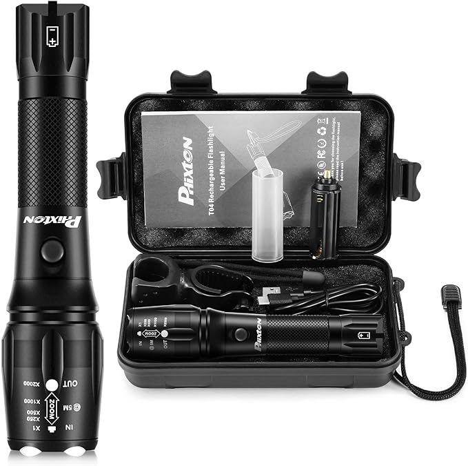PHIXTON Rechargeable Flashlights High Lumens, 5000 Lumen USB C Chargeable LED Flashlight, Bright Strong Handheld Flash Lights, Long Lasting, Adjustable Focus, 5 Modes, for Emergencies Hiking Gift