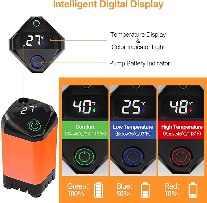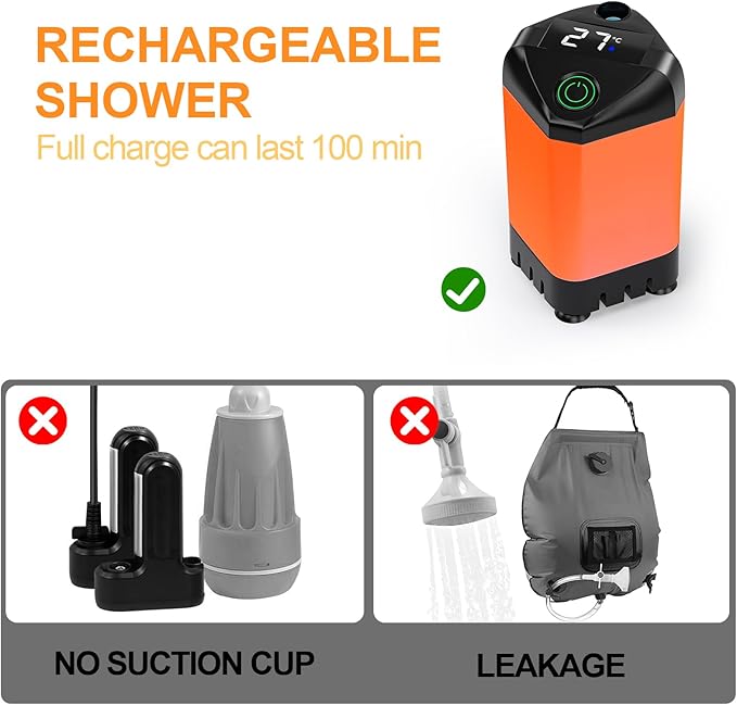 - ENJOY YOUR SHOWER WITH PEACE OF MIND - Built-in 4800mah rechargeable battery lasts up to 1.5 hours. With temperature display and power indicator. Real-time temperature measurement, no need to worry about the water temperature is too high burns or fear of power failure in the shower.