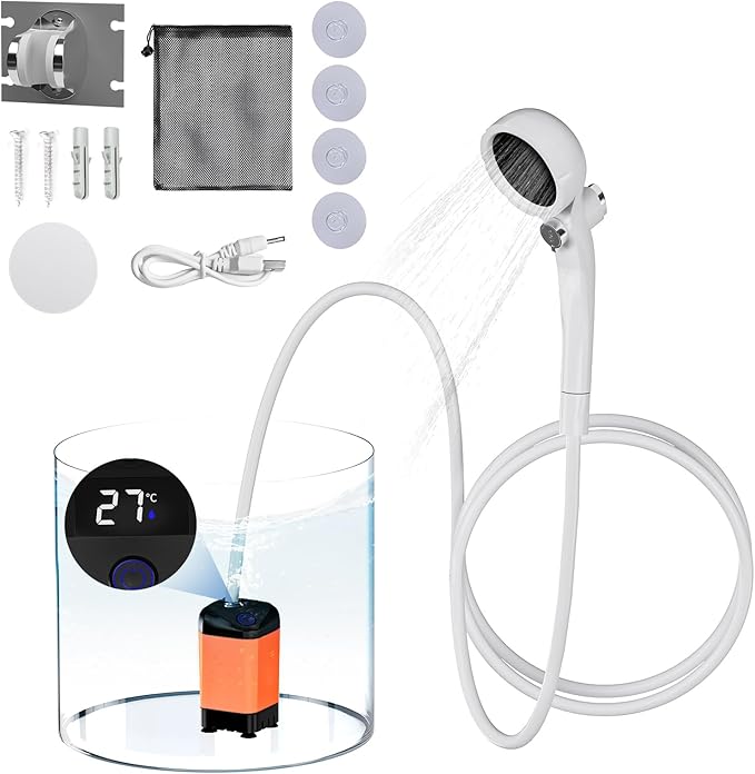 Portable Camp Shower, Camping Shower Pump with 4800mah USB Rechargeable Batteries, Carryable Temperature Display Shower for Camping, Hiking, Traveling