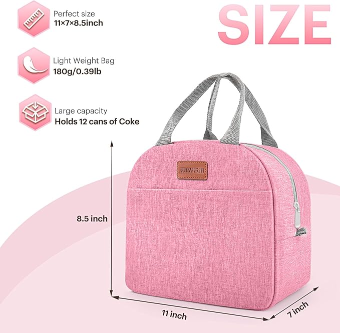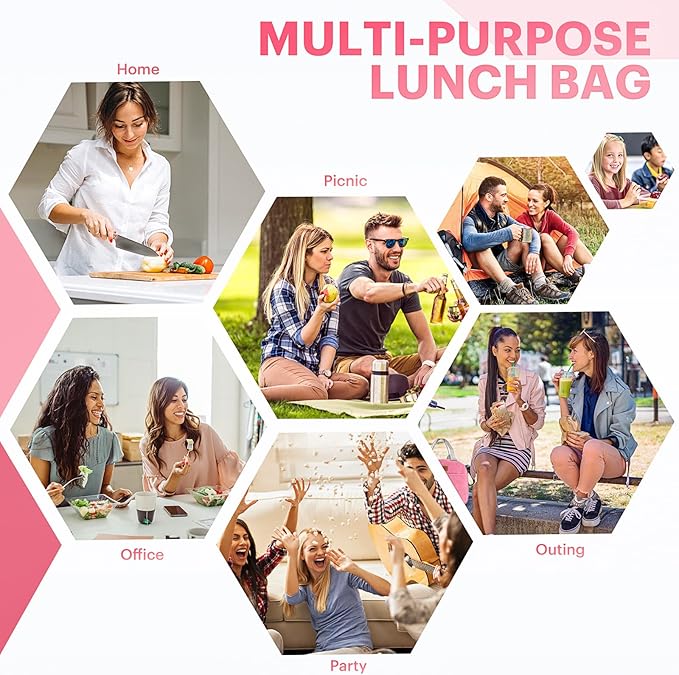 Lunch Bag for Women & Men Adult Insulated Lunch Box, Small Leakproof Cooler Food Lunch Containers Reusable High Capacity Lunch Tote Bags for Work, Travel, Outdoor (Pink)