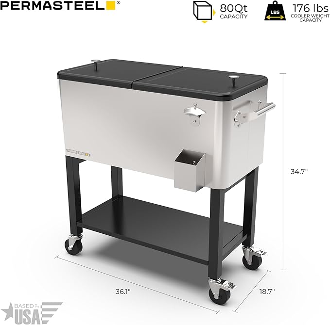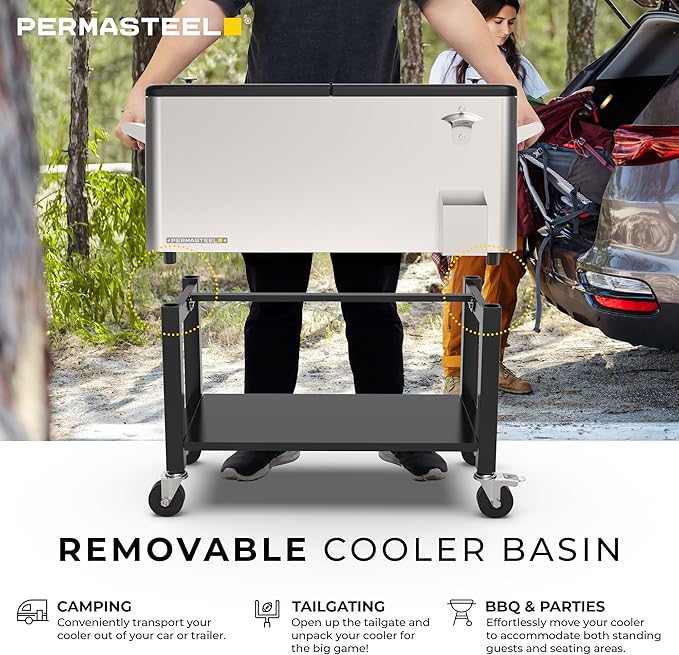 - Detachable & Portable Design - Take the party anywhere you go with the Permasteel outdoor cooler featuring a detachable and portable basin. This drink cart is perfect for beach days, park barbecues, birthdays, holidays, and more.