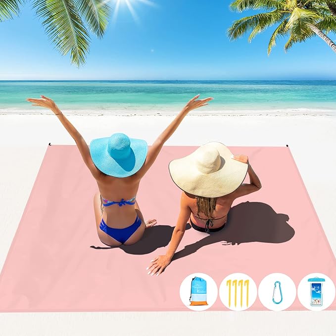 - Oversized Extra Large Beach Blanket 78" X 81"Size,1-7 Adults in total,Made by parachute fabric,More than 30% larger than other blankets,12 oz easy to carry!