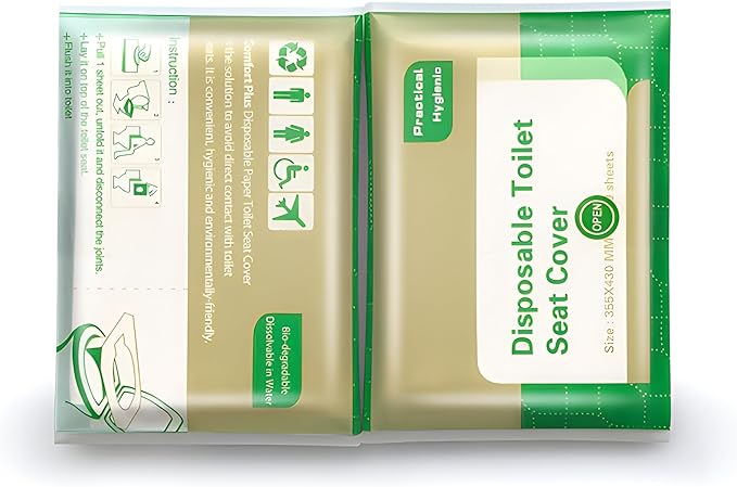 - Superior Comfort: Soft natural wood pulp fabric for comfort, an easy way to keep your skin clean. Disposable flushable toilet seat cover is the best solution to avoid direct contact to toilet seats