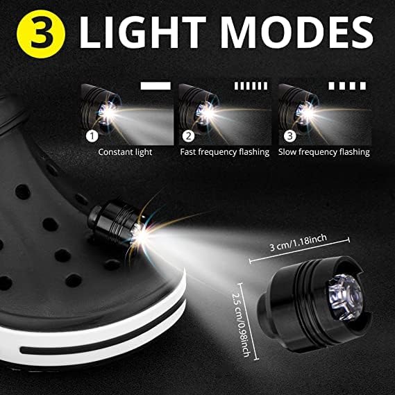 - 【Three Light Modes】Easily switch between three different light modes (flashing, quick flashing, and steady on) by pressing the head of the Croc lights to select the mode that best suits your needs.