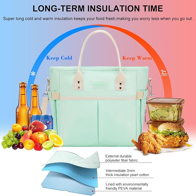Lunch Bag Women for Work Insulated Thermal Lunch Box with Wide-Open Pocket Reusable Leakproof Lunch Cooler Bags with Removable Shoulder Strap for Adult Ladies Teacher Nurse in Office Picnic Travel