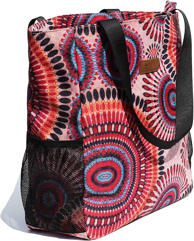 ESVAN Original Floral Water Resistant Large Tote Bag Shoulder Bag for Gym Beach Travel Daily Bags Upgraded