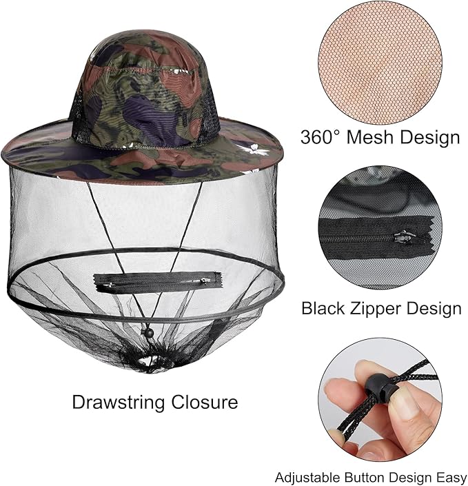 • 360 Degree Face Mesh Design: Mesh design can effectively protect from mosquito disturbing and biting. There is a black zipper on the mesh (you need to cut the opening by yourself) and it is convenient for drinking or eating without taking off the hat.