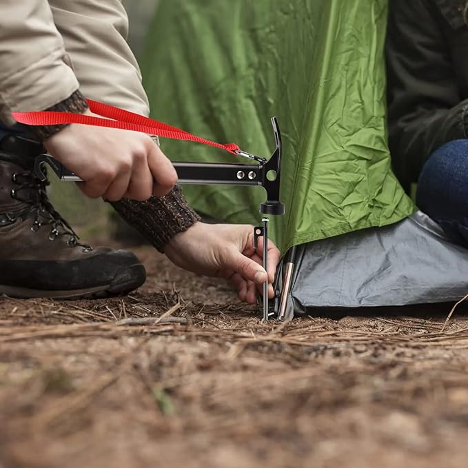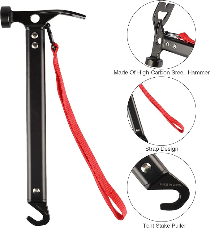 - 【Multi-Functional Hammer】High quality Anodised Aluminum Handle; With high-carbon steel material hammer head, strong,durability and rust prevention.Tent stake mallet hammer's head could be used to dig soil or hammer a nail. The hook of the rear also can be used to pull stakes out.