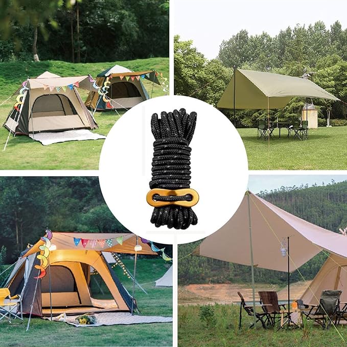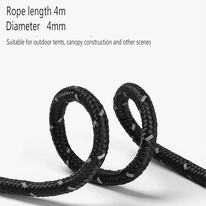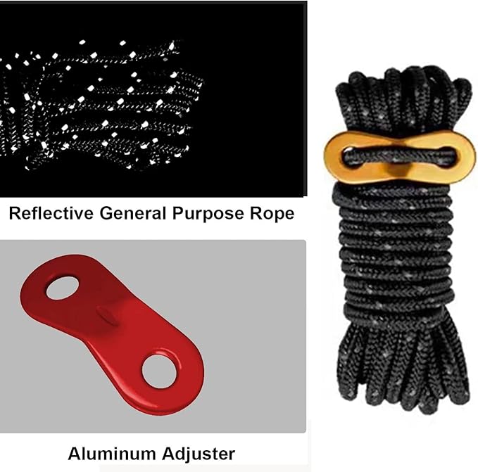 - 4mm Outdoor Guy Lines Tent Cords Reflective Canopy Wind Rope Lightweight Camping Rope with Aluminum Guylines Adjuster for Tent Tarp, Canopy Shelter, Camping, Hiking, Backpacking