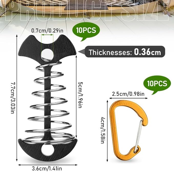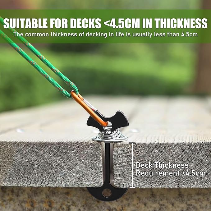 - 【Portable & Package Included】-- It is small and lightweight to take out for outdoor activities. It contains 10PCS Deck Anchor Pegs & 10PCS Carabiners.