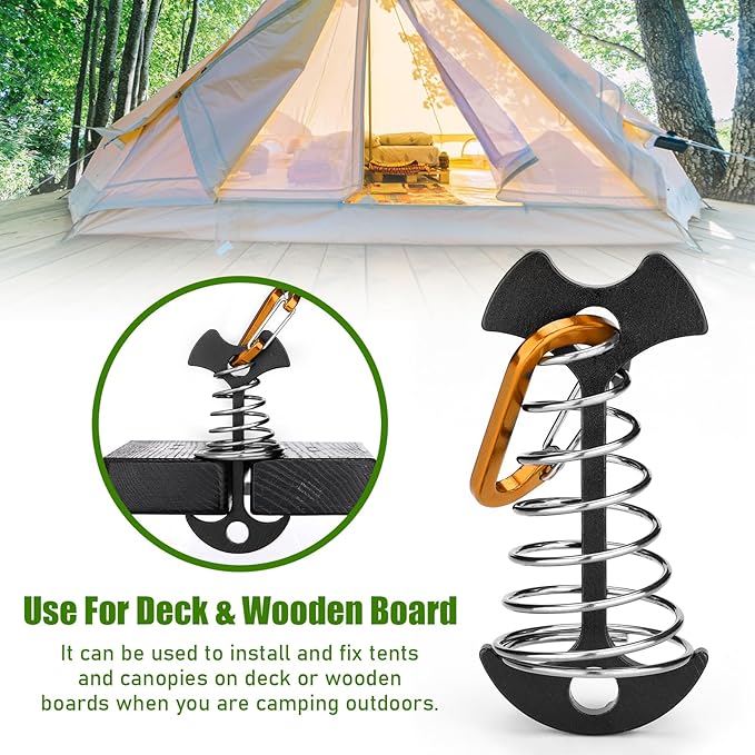 - 【Easy To Set Up & Remove】-- Just insert it into the gap and rotate it to fix it when installing the tent on the wooden board with gaps in the camping area. It can be installed without damage to the board. It will be more effective when combined with carabiner.