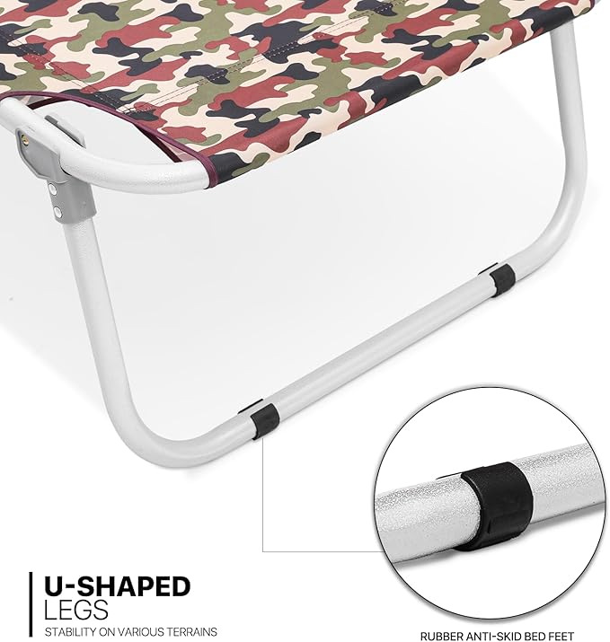 - Stable U-Shaped Legs - The U-shaped legs not only provide excellent stability on various terrains, but also add a unique aesthetic touch to the cot, combining function and style.