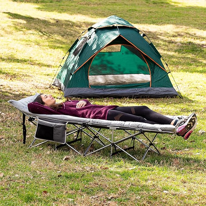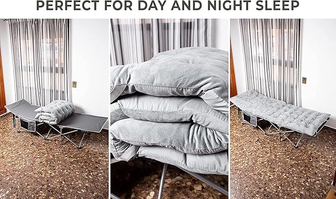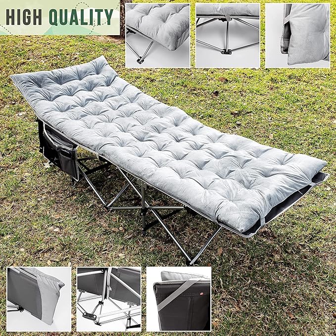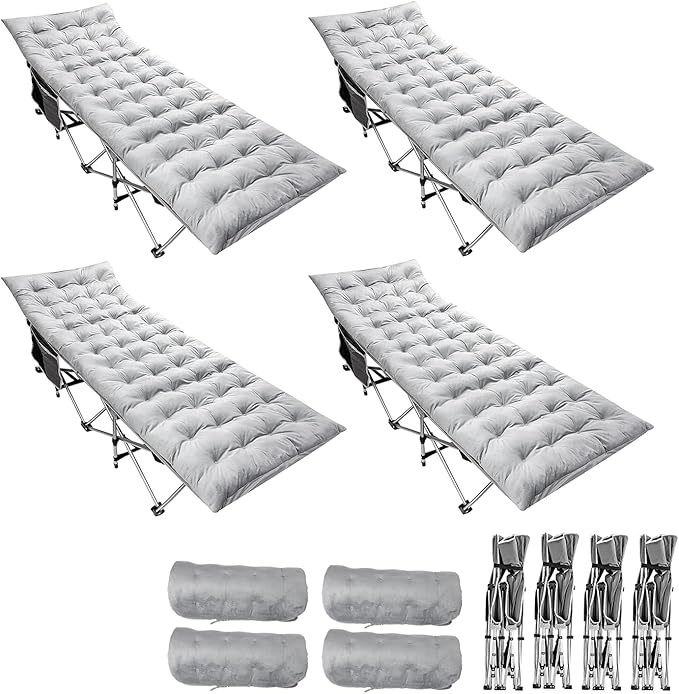 Zento Camping Cot and Mattress Folding Outdoor Travel Bed 4 Pack- Heavy Duty Max Load 450 LBS Premium Quality Cot Bed with Pad for Comfort Sleeping for Travel Home and Anytime Use