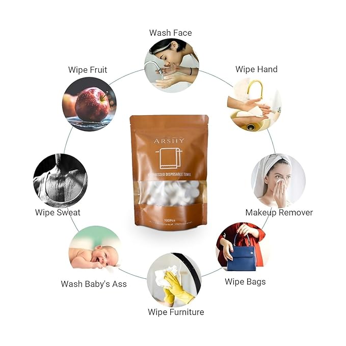 - ✅ Versatile Use: ARSHY compressed towels tablets are compact and lightweight, making them ideal for travel, hiking, and camping. ARSHY compressed towel tablets are not just for outdoor use. They are also perfect for daily use at home, in the gym, or at the office. These disposable face towels are also great for removing makeup. They expand with water, providing a convenient and hygienic way to clean your face and hands.