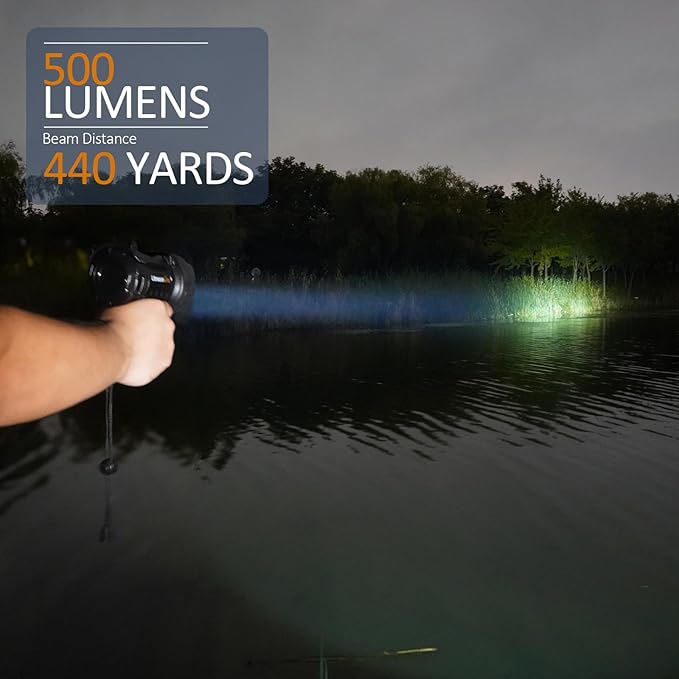 - Powerful Illumination: With an impressive brightness of 500 lumens, this flashlight delivers exceptional lighting, ensuring a bright and clear view in dark environments. Whether for camping, nighttime adventures, or emergencies, it provides reliable illumination support.