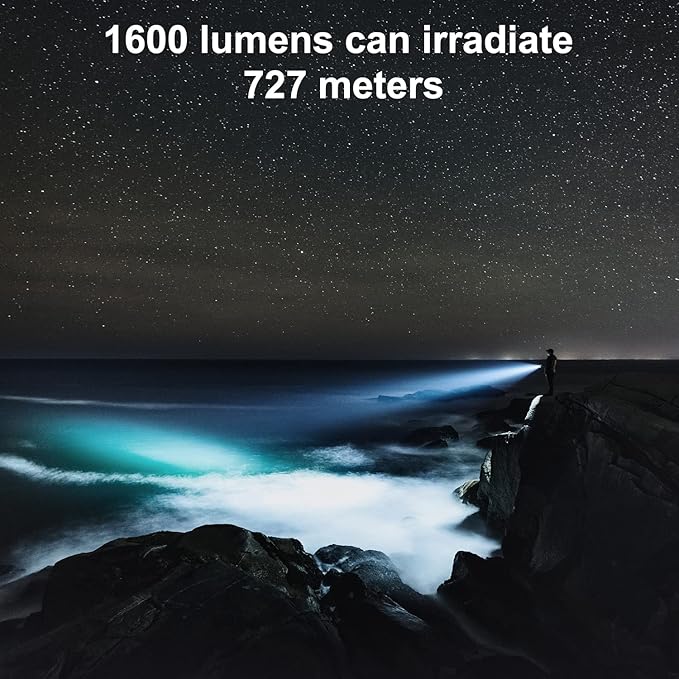- Incredibly Bright: The APLOS T04 flashlight boasts an impressive 1600 lumens, ensuring it lights up the darkest of nights. With a maximum beam distance of nearly 2385 feet (727 meters), it's perfect for illuminating even the most distant objects.