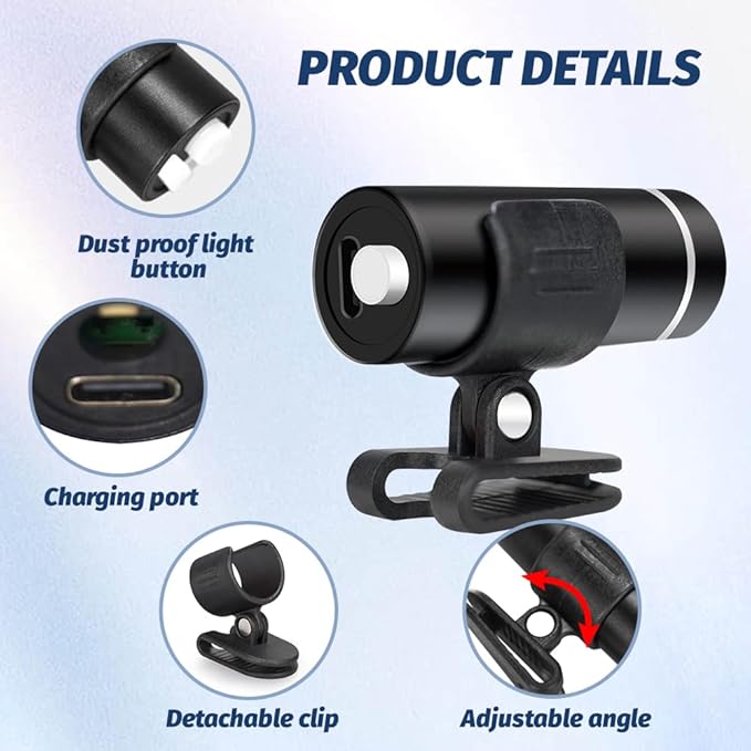 - - [High-line Features] Bright focus with up to 200 lumens in 3 modes. And high-capacity 300mAh rechargeable battery for long-lasting illumination to enhance visibility in low-light conditions. IP5 waterproof rating for reliable performance in light rain and splashes.