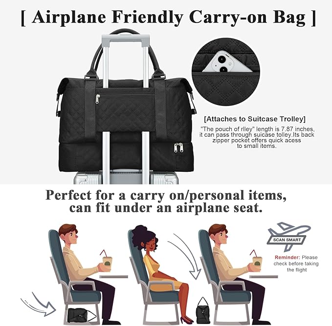 - Airplane Friendly Overnight bag: The perfect carry-on bag for airline travel. Integrated trolley sleeve slides over rolling luggage handle making airport travel a breeze. Your ideal overnight weekend boarding bag for business or personal travel