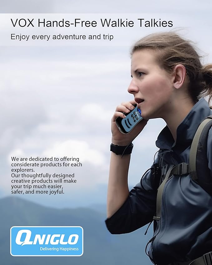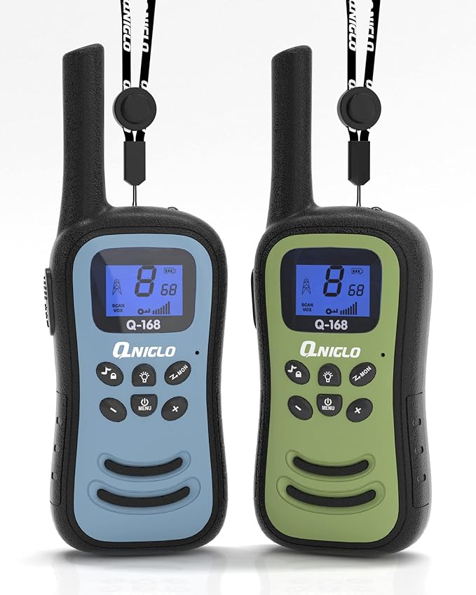 - 🎄🎁【Perfect Gift for All Ages】Qniglo walkie talkies for kids long range make more fun for your communication with your kids, friends, and parents. Kids walkie talkies will be the best choice for birthday, children's day, father's day and Christmas gifts. Be ready for outdoor life, hiking, camping, hunting, skiing, and cycling, and always stay in touch.