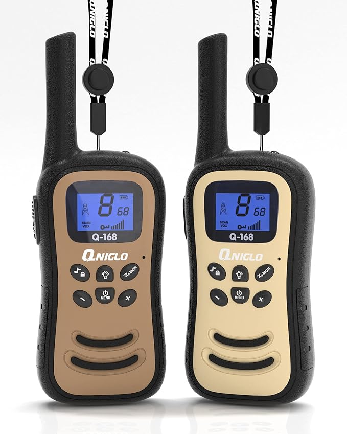 - 🎄🎁【Perfect Gift for All Ages】Qniglo walkie talkies for kids long range make more fun for your communication with your kids, friends, and parents. Kids walkie talkies will be the best choice for birthday, children's day, father's day and Christmas gifts. Be ready for outdoor life, hiking, camping, hunting, skiing, and cycling, and always stay in touch.