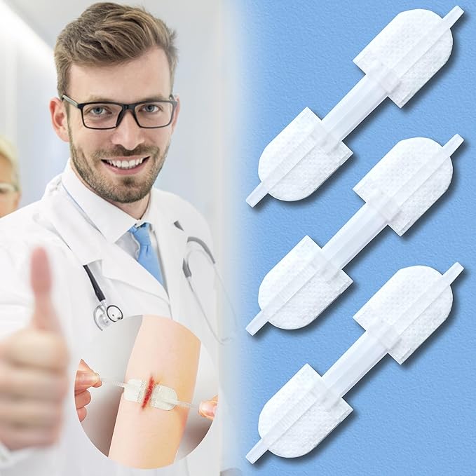 Wound Closure Strips - Emergency Laceration Closure Kit to Repair 3 Individual/Combine Wounds Without Stitches, Butterfly Bandages for Wound Closure to Close, Cover Wounds - Quick Clot