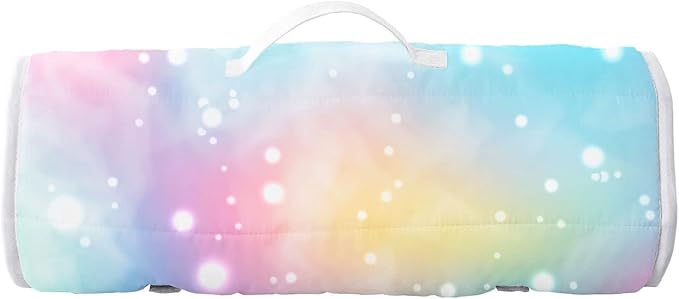 - Portable - a sleeping mat, blanket and pillow. Rolled up easily with hook and loop fastener and convenient carry handle. Perfect for preschool, daycare and sleepovers.