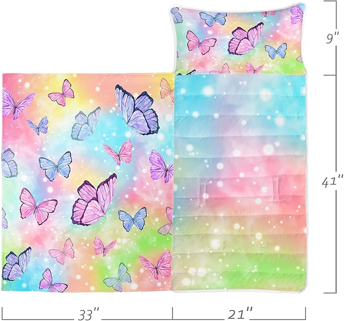 - Size - Nap mat measures 50“x21”x2“, comes with 21”x9" removable pillow. Attached blanket measures 41” x 33”. Suitable for children ages 3 to 7.