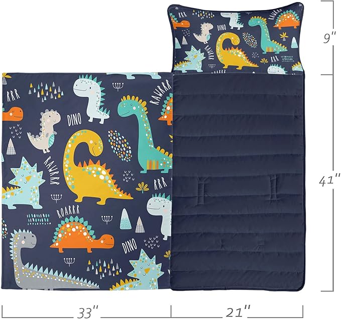 - Size - Nap mat measures 50“x21”x2“, comes with 21”x9" removable pillow. Attached blanket measures 41” x 33”. Suitable for children ages 3 to 7.