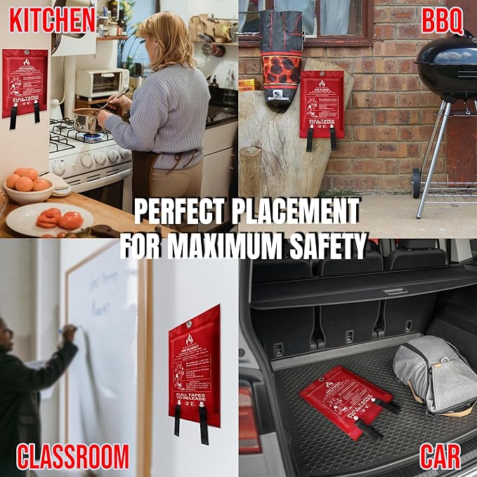Fire Blankets Emergency for Home, Kitchen, Camping, Office and Vehicle | Flame Retardant Fire Extinguishing Blanket | Fire Extinguisher Safety Suppression Blanket - Made from Fiberglass