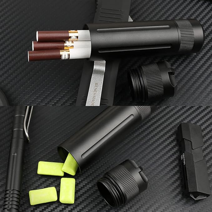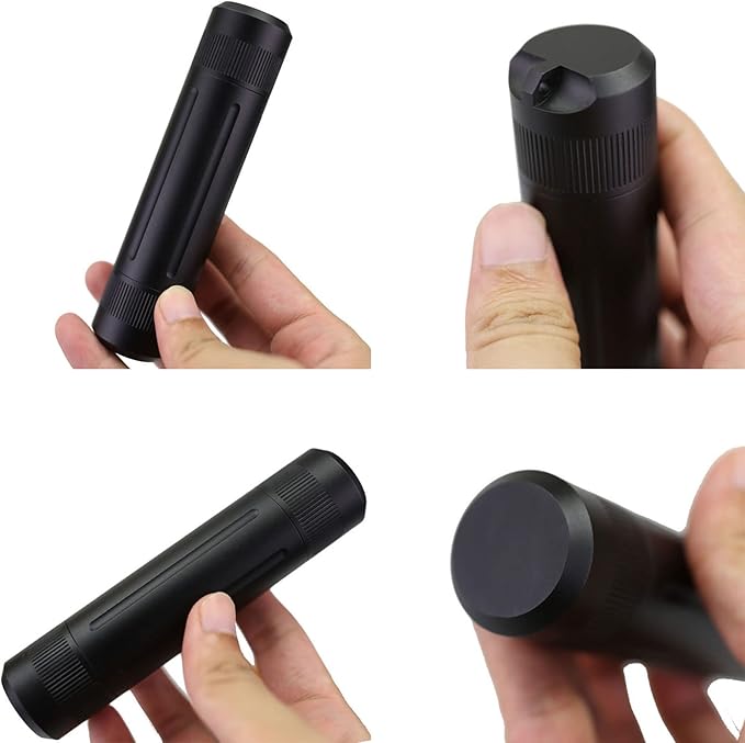 - Easy to use: This EDC survival container has an outer size of 120mm x 28.5mm and an internal storage capacity of 95mm x 24.5mm and weighs approximately 68g, the container can be opened from the top and bottom for easy access to what you need;