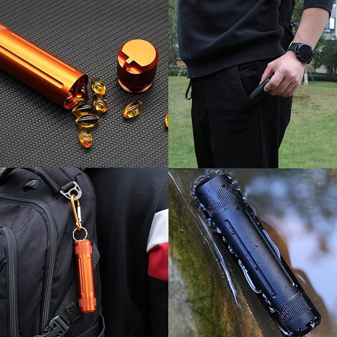 - Wide range of uses: This container can hold your daily essentials or small valuables, and can store vitamins, money, flash drives, batteries, matches, ear plugs, outdoor spices and other outdoor travel accessories; Perfect for hiking, fishing, camping, hunting or as emergency equipment.
