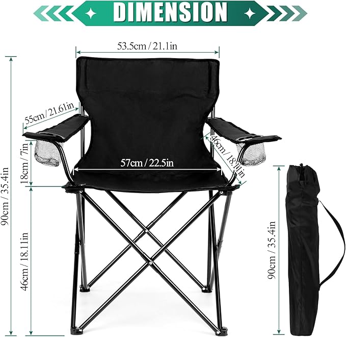 - [Adult Unisex Size] - Total height of our camp chair is 35.4 inches, of which seat cushion is 18.1 inches above floor to relax your legs, 22.5x18.1 inches of seat cushion has sufficient space for a man or woman to stretch out, 21.1in wider backrest fully supports your back and shoulders, No worry about the size being too small to fit