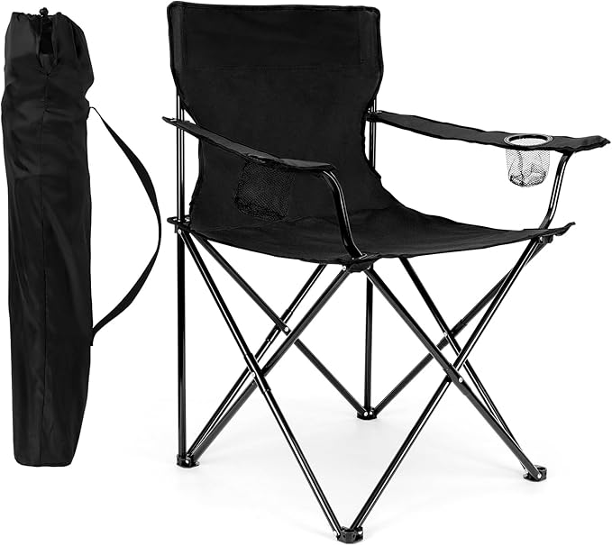 HaSteeL Camping Chair, Oversized Folding Lawn Chair for Adults, Foldable Camp Chair with Cup Holders Portable for Outdoor Fishing, Hiking, Travel, Picnic, Beach, Carrying Bag & Supports 275lbs (Black)