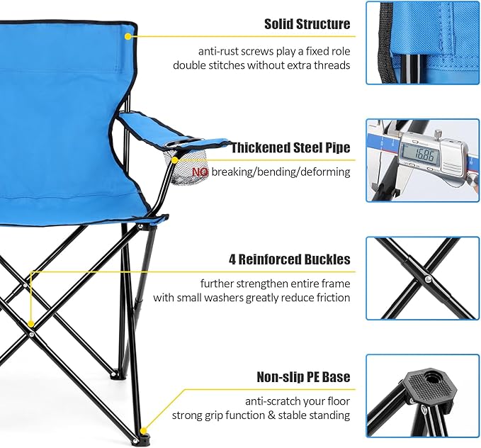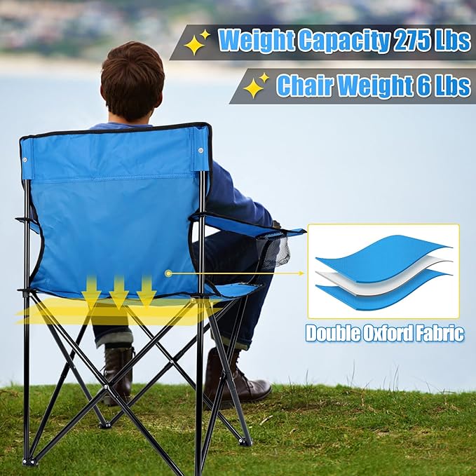 HaSteeL Folding Camping Chair & Carrying Bag, Foldable Camp Chair with Cup Holders for Adults, Portable for Lawn, Outdoors, Fishing, Hiking, Travel, Picnic, Beach, Oversized & Supports 275lbs (Blue)