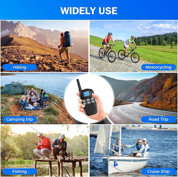 - 【Backlit LCD Display and LED flashlight】This walkie-talkie features a backlit LCD screen for high visibility at night. Built-in LED flashlight that can be used as a strobe and emergency light. Small in size and light in weight, the shell is durable and drop-proof. Let you and your family enjoy games or outdoor adventures.