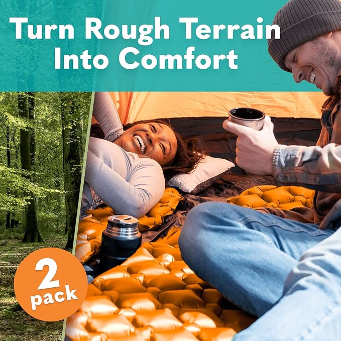 Sleeping Pad for Camping - Ultralight Sleeping Mat for Camping, Backpacking, Hiking - Lightweight, Inflatable & Compact Camping Air Mattress - Inflatable Camping Mat (Orange, 2 Pack)