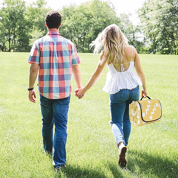 Waterproof Sandproof Travel Blanket, Large Yellow Picnic Mat for 2-4 Adults, Lightweight Beach Blankets with Carry Strap, Foldable Outdoor Blankets for Camping, Grass, Park