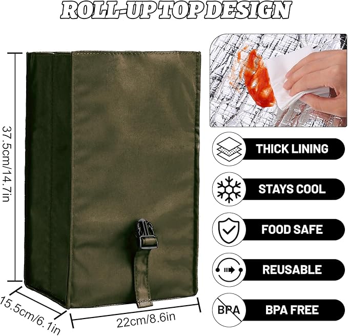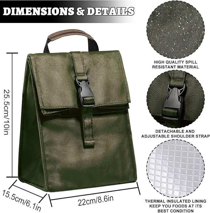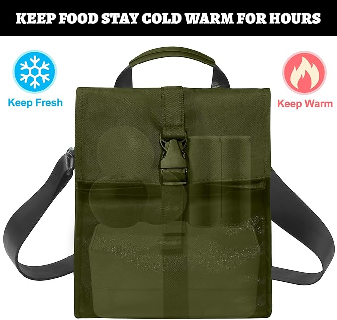 Insulated Foldable Lunch Bag- Lightweight Portable with Adjustable Shoulder Strap Lunch Box for Men, Women, Office, Work, Picnic, Hiking and Beach (Army Green(Soft Fabric))