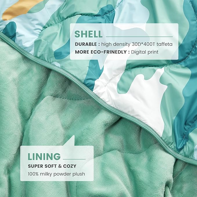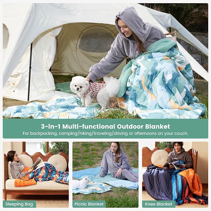 Cozy Bliss Puffy Outdoor Camping Blanket, Sleeping Bag, Picnic Mat-3 in 1 Multi Use, Warm Down Alternative Filled, Lightweight Packable for Hiking Travel Stadium Concerts, Gift for Children 63"x78"