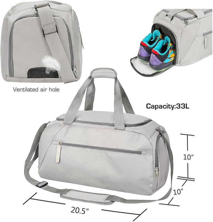 ROTOT Gym Duffel Bag, Gym Bag with Waterproof Shoe Pouch, Weekend Travel Bag with a Water-resistant Insulated Pocket