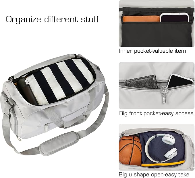 - Well-Designed Construction: Rotot sports bag’s insulated pocket is made from 13S aluminum foil which can keep drinks and wet towel at the perfect temperature for hours and be water resistant. Built-in shoe compartment with an air hole keep your shoe storage private and fresh. Other spacious pockets are easy to organize your belongings, like keys, cards, phone charger, speakers, umbrella, shampoo and body wash, etc.