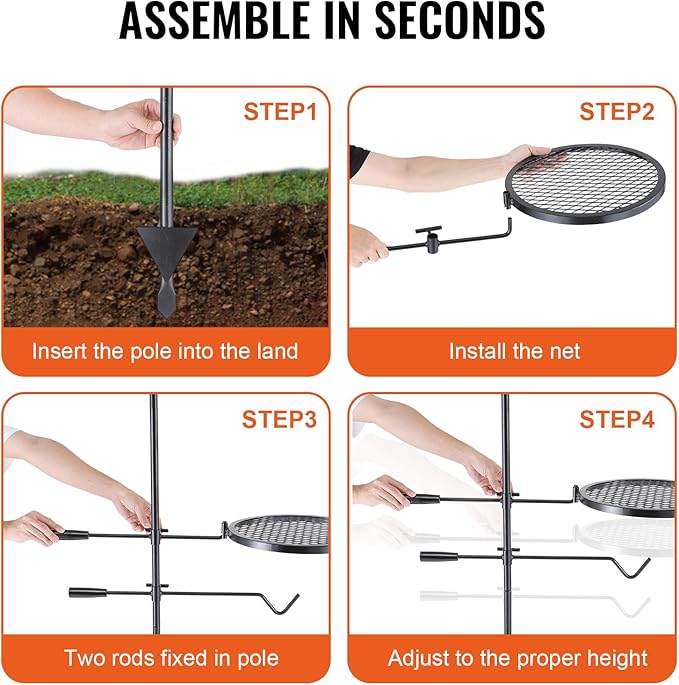 - Multi-Purpose Use: Assemble quickly in 5 minutes with the clear instructions. Designed for use with outdoor cookware, frying pans, skillets, and pots, for cooking over an open fire and widely used outdoors such as camping, hiking, picnic, traveling, backpacking, climbing, fishing, and other outdoor activities.