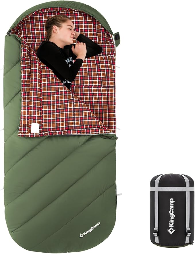 KingCamp Sleeping Bag for Adults, Cold Weather & Warm Extra Wide Big & Tall XL Portable Waterproof Flannel Sleeping Bags, Essentials Gear Accessories for Camping Backpacking Hiking Indoor & Outdoor